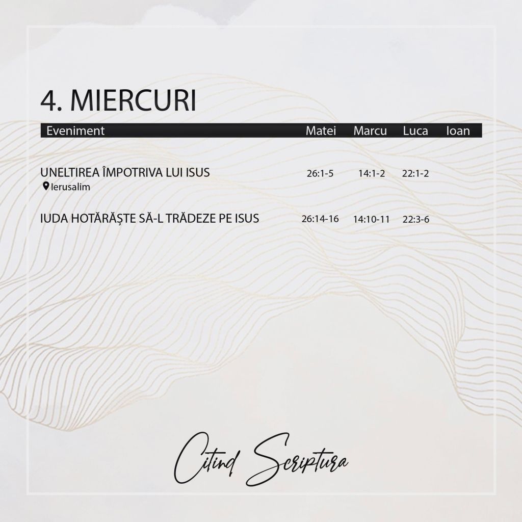 Propun continuarea călătoriei de miercuri la pas cu Isus prin săptămâna mare, alăuri de niște versuri pe care Dumnezeu mi le-a dat într-o miercuri din săptămâna mare, ceva ani în urmă: