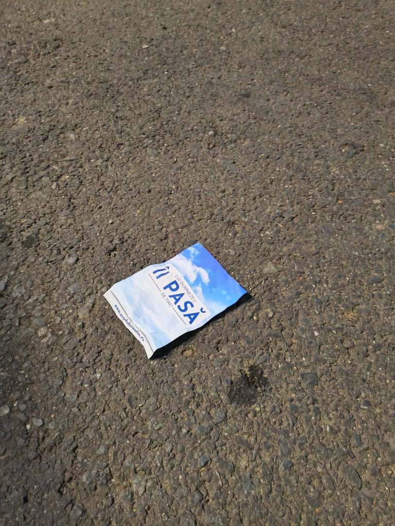 În fața mea, era aruncat un flyer, mototolit și zvârlit. M-am oprit în dreptul lui. Mi-a venit să plâng. Chiar am lăcrimat. Și acum când scriu articolul sunt în lacrimi. O broșurică frumoasă, de culoare albastră, cu imaginea cerului senin și însorit pe fundal, pe care scrie mare: LUI DUMNEZEU ÎI PASĂ DE TINE!